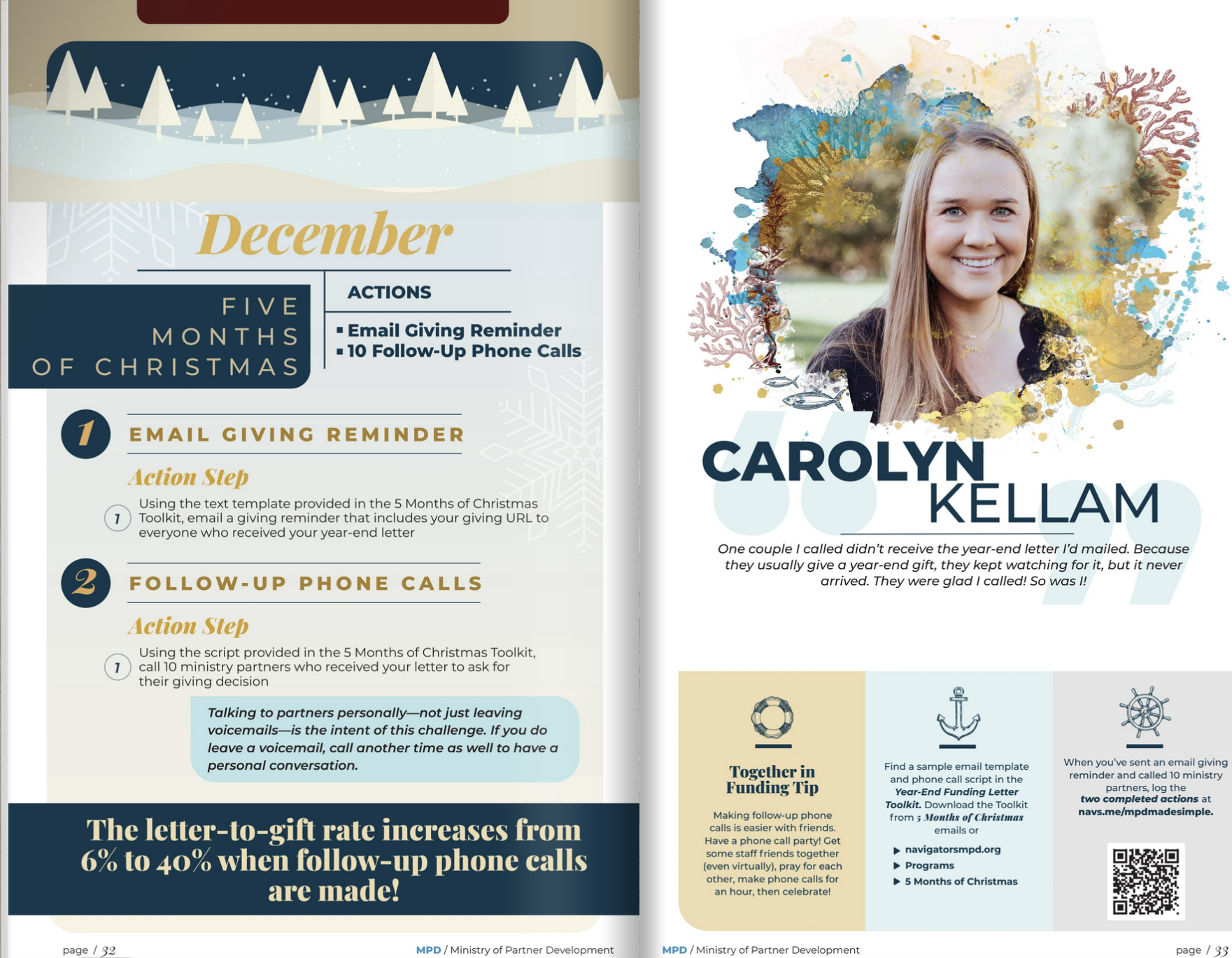 2 weeks preparing for MPD activity (warm-up), 5 weeks expanding your ministry partner team and raising new monthly support, and 2 weeks to bring follow-up calls to a close (cool-down)